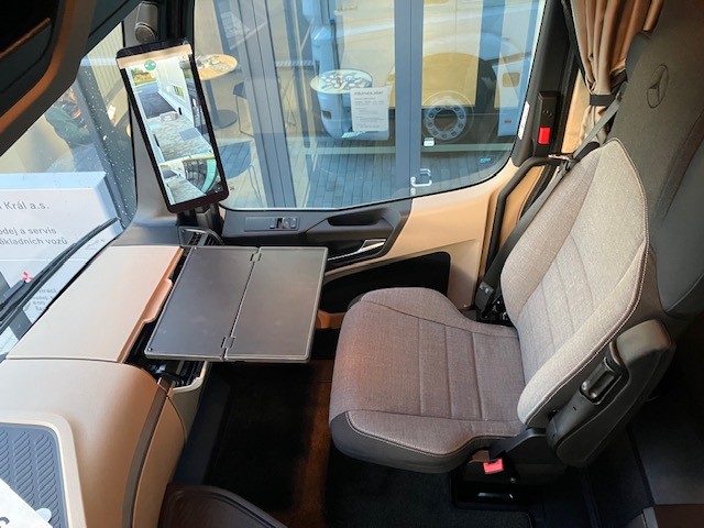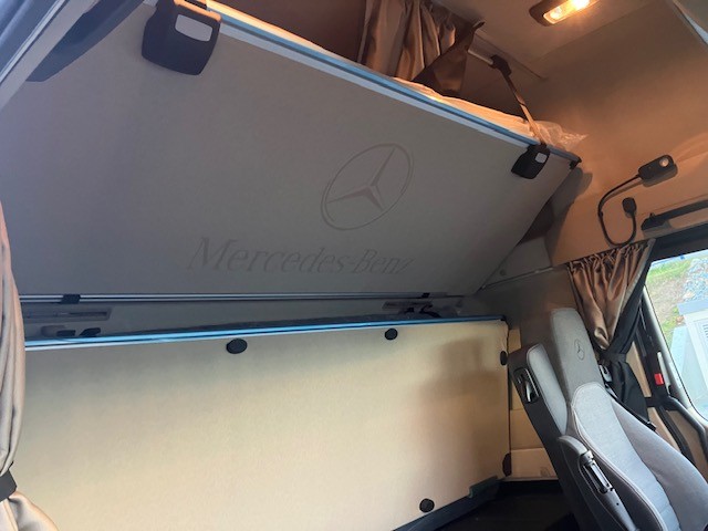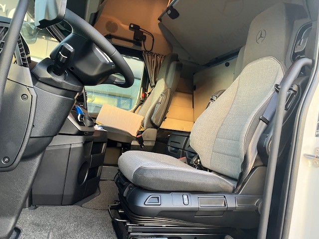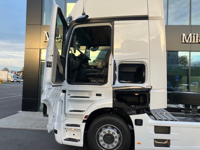 B5I Elektr. a brzdové přípojky pro návěs výše uložené C0G Zadní převis 1050 mm C7T Akumulátory a vzduchojemy na konci rámu C8Z Zakrytování mezi nápravami D0A Kožený volant D1C Sedadlo řidiče odpružené, komfortní D2W Loketní opěrky oboustranně na sedadle spolujezdce D3A Lůžko horní široké, nivelační, komfortní D4E Chránič matrace pro spodní komfortní lůžko D4K CabLock D4Y Sluneční roleta, boční, strana řidiče D5K Světlo čtecí LED 2x, dlouhý nastavitelný krk D5O StyleLine D5S Potah sedadla řidiče z prvotřídní hladké tkaniny D5T Potah sedadla spoluj. z prvotřídní hladké tkaniny D5Z Kobercový potah na motorovém tunelu D6C Klimatizace nezávislá, elektrická D6G Klimatizace automatická D6I Využití zbytkového tepla chladící kapaliny D6V Hluková a tepelná izolace kabiny D7F Úložné schránky nad čelním sklem, jedna uzamyk. D7G Víka úložných prostorů, na obou stranách D7I Zásuvky do úložných schránek D7K Zásuvka pod palubní deskou D7N Flexibilní odkládací prostor nad čelním sklem D7V Stolek, na straně spolujezdce D8N Střešní klapka, elektricky ovládaná E1Z Akumulátory AGM, 2x 12 V / 220 Ah, bezúdržbové E2J Jističe namísto pojistek E3E Zásuvka přídavná 12V/15A, u nohou spolujezdce E3R Zásuvka přídavná 24 V/25 A, u nohou spolujezdce E6Z Akustická výstraha při couvání E8F Konektor USB-C v úložném prostoru nad čelním sklem E9G Elektroinstalace pro dodateč. montáž spotřebičů E9I Příprava pro spínač pro zvedací nápravu návěsu F1J Kabina L GigaSpace, 2,50 m, rovná podlaha F2A Varianta podlahy, rovná podlaha F2H Šířka kabiny 2,50 m F2P Kabina, uložení 765 mm F2X GigaSpace F3C Uložení kabiny komfortní, na vzduchových měších F4Z Úložná schránka vlevo pod kabinou F5E Spoiler střešní,pevný, s boč. spoilery na kabině F5L Sluneční clona vnější F6Q Houkačka podtlaková F6V Držák MirrorCam chrom., spodní kryt v barvě kabiny J2G DAB + rádio J8X Příprava pro mýtný systém Toll4Europe K0W Přídavná nádrž, vpravo K2D Nádrž 680+120AdBlue,vlevo,650x700x2170mm,Alu,stup. K6K Přídavná nádrž 430l, vpravo,650 x 700 x 1100mm,Alu K8D Výfukový systém, konc. trubka vyv. vpravo horiz. L1G Hlavní světlomety LED L1P Zadní světla, provedení LED O3J Climate Package se zvukovou/tepelnou izolací O3R Actros L OYL Stowage Package OYN Sight Package s hlavními světlomety LED OYO Media Package s připojením USB-C Q1S Pera přední 7,5 t, 2listá R8F Držák rezervního kola provizorní R8P Rezervní kolo / rezervní ráfek X5Y Actros L sale Y1T Držák na notebook