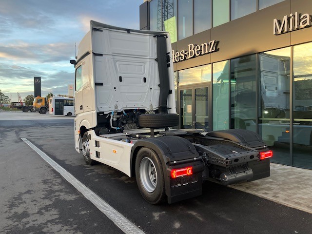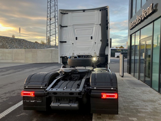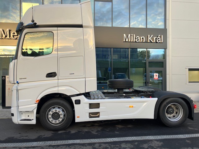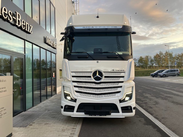 A1C Přední náprava 7,5 t A1Z Přední náprava, prohnuté provedení A2E Zadní náprava 13 t, talířové kolo 440, hypoidní A3D Zadní náprava s neřízeným aktivním mazáním A5G Stálý převod i = 2,412 B1B Elektronický brzdový systém s ABS a ASR B1F Vyhřívání sys. rozvodu stlač. vzduchu (APU/EAPU) B1H Ovl. el. jedn. stlač. vzduchu park. brzdy, střed B2A Brzdy kotoučové na přední i zadní nápravě B2X Parkovací brzda elektronická, s funkcí Hold B4A Kondenzační senzor pro stlačený vzduch B4M Vzduchojem ocelový C1W Rozvor 3700 mm C5B Nášlapná plošina nad rámem, částečné pokrytí C5D Schůdky za kabinou, vlevo C6C Servořízení jednookruhové C6I Čerpadlo posilovače řízení, řízené C6Q Stabilizátor přední nápravy C7F Zábrana proti podjetí přední (ECE), alu C8C Blatníky zadní pro šířku vozidla 2500 mm C8H Blatníky 3dílné s ochranou proti ostřiku C8I Blatníky vpředu s ochranou proti ostřiku C8Y Zakrytování podvozku, aerodynamické D0S Tlakovzdušná přípojka v kabině řidiče D0U Detektor kouře v kabině D1N Sedadlo spolujezdce, sklopný sedák D2N Odjištění opěradla sedadla řidiče D2Y Kontrola zapnutí bezpečnostních pásů D3B Lůžko spodní komfortní D4T Záclona napříč kabinou před lůžkem D6M Topení přídavné teplovodní, pro kabinu D7J Zásuvky pod postelí D8X Podstavec sedadla, snížený o 40 mm E1U Alternátor LIN 28 V / 150 A E4B Rozhraní pro přenos dat FMS 2.0 (fleet management) E5H Spínač nočního svícení, zelený E5K Spínač MirrorCam, u lůžka E6A Zásuvka pro přívěs 15pólová, 24 V E7F Kabelové dálkové ovládání vzduchového odpružení E8D Konektor USB-C v bočním úložném prostoru, vlevo E8E Konektor USB-C v bočním úložném prostoru, vpravo F0F Boční modul, vozidlo kategorie N3 F1R Kabina L dlouhá F3W Kabina sklápěcí mechanicko-hydraulicky F4H Zadní stěna kabiny bez oken F4X Dvířka venkovní schránky, vlevo F4Y Dvířka venkovní schránky, vpravo F5Y Lišta A-sloupku pro úsporu paliva F6D Čelní sklo determální s pruhem F6I Čelní zrcátko, vyhřívané F6T MirrorCam F7A Nárazník, s plastovými rohy F7C Nárazník vpředu s tažným okem F7T Dveře, prodloužené F7X Vstup do kabiny řidiče levý/pravý, pevný F8B 2 klíče s dálkovým ovladačem F8E Centrální zamykání F8F Centrální zamykání komfortní F8V Světelný senzor F8W Dešťový senzor G0K Jízdní program Economy/Power G0T Predictive Powertrain Control G2E Převodovka G 281-12/14,93-1,0 G5A Jednokotoučová spojka G5G Řazení automatizované Mercedes PowerShift 3 G5L PowerShift Advanced H2C Vzdálenost mezi osou ZN a osou točnice +600 mm J0U Remote update of driving assistance map J1M Dig. tachograph, 2nd gen., version 2, ADR J1S Tachograf VDO J2K Reproduktory, 2pásmové J2U Navigace On Board J3Z Měření zatížení na nápravách se zobrazením na FSS J6E Multimedia cockpit Interactive 2 J6W Zpětná kamera J7A Truck Data Center 7 J7V Mapové podklady pro Evropu J8G Příprava pro Remote Truck App J8U Příprava pro Truck Data Center 8 J9A Elektroinstalace pro vysílačku, 12V DIN slot K0T Hlavní nádrž, vlevo K5M Uzávěr nádrže uzamykatelný L0A Osvětlení vozidla podle předpisu UN-R 48.06 L1C LED světlomety pro denní svícení L1D Aut. ovl. dálk./potk. světel + přisvícení do zat. L1M Mlhové světlomety LED L1W Odbočovací světla LED se světelným podpisem L2H Poziční světla, blikající L3F Světlomet pracovní, spodní M0C Spodní kryt proti víření prachu M0E Zvýšení kroutícího momentu na 12. převod. stupeň M0Q Protihlukové zakrytování dle předpisu ECE NGL, úro M3C Motor OM471, R6, 12,8 l, 350 kW (476 k), 2300 Nm M4V Zvýšení točivého momentu v přev. stupních 7-11 M4X Motor v provedení Euro VI, E M5D Motor OM471, 3. generace M5V Motorová brzda, zvýšený výkon M6E Turbodmychadlo, spotřebově optimalizované M6R Air compressor, two-stage, deactivatable M7K Krycí žaluzie chladiče M7T Vodní pumpa, řízená M8B Sání vzduchu za kabinou, vně M8N Systém vzduch. filtrů, životnost přes 300 tis. km O0T TruckLive O3K Active Safety OWY Interior measures upgrade Q0W Točnice z výroby Q0Y Úhly náklonů neodpovídající normě DIN ISO 1726 Q4I Výška točnice, H = 150 mm Q4X Točnice, manuálně mazaná Q6G Točnice bez montážní podložky Q6J Točnice kompaktní, Jost JSK 40K Q6Z Úhelník pro montáž točnice s rastrem děr R0Z Kryty matic kol R1Q Ráfky 9,00 × 22,5 S1D Asistent regulace stability (ESP) S1H Asistent jízdy v pruzích (LDWS) S1L Asistent sledování bdělosti S1O Asistent dopravního značení S1Y Kontrola tlaku v pneumatikách S2D Active Brake Assist 6 S2H Active Sideguard Assist 2 S2L Přední monitorovací asistent (MOIS) S4A Příprava pro alkohol tester s imobilizérem S5A Omezovač rychlosti 90 km/h (ECE) S5Z Tempomat a temposet U2G Výfukový box U3S Elektronická architektura 2. generace V0Q Vozidlo plnící GSR, fáze B V0S Vozidlo třídy N3 V1A Actros V1W Standard V2B Actros – modelová generace 5 V8A Číslo podvozku VIN V9F Technické změny – modelový rok duben W0J Hmotnostní varianta 18,0 t (7,5/13,0) X1S Štítky a dokumentace česky X2A Typové označení dle hmotnostní varianty X2E Typový štítek, EU X2N Upozornění „L”, zákaz nočních jízd v Rakousku X3W Záruka na hnací řetězec, 3 roky / 450 000 km X3CA0N TRUCKTraining – školení pro 2 řidiče Y1X Lednice výsuvná, pod lůžkem Y4A Zvedák 12 t / 19 t Y4I Klín podkládací Y4R Nástavec pro huštění dvojmontáže, bezdušové pneu Y4Y Hadice pro huštění pneumatik Y4Z Tlakovzdušná pistole, s hadicí Z4O Profil nádrže, úzký Z4R Profil nádrže, vysoký Z5E OM 471 Z5X Levostranné řízení Z5Y Vozidlo pro pravostranný provoz