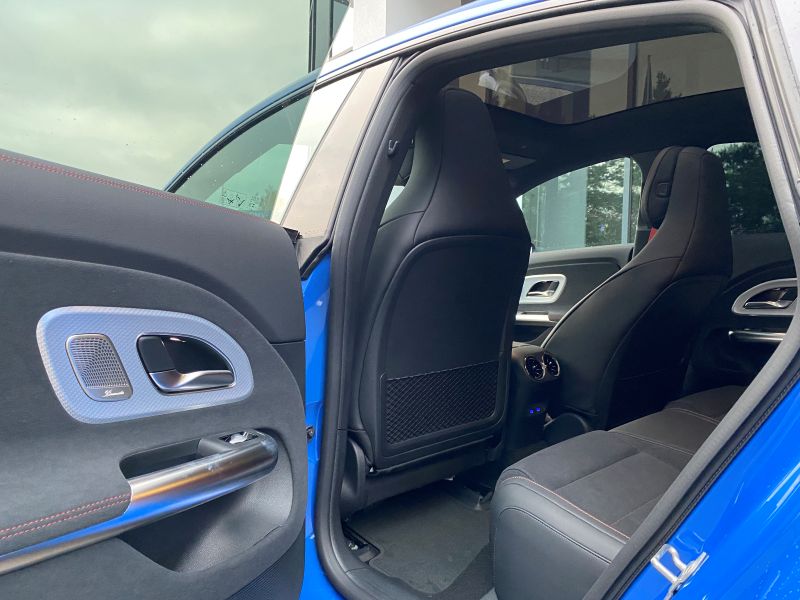 Sada na opravu pneumatik TIREFIT, Akustická výstraha pro okolí, Automatický restart při popojíždění v dopravní zácpě, Asistent přizpůsobení rychlosti, Asistent udržování odstupu DISTRONIC, Aktivní asistent rychlostního omezení Speed Limit Assist, Asistent hlídání mrtvého úhlu, Asistent udržování jízdního pruhu, Asistent dopravního značení, Upozornění na překročení rychlostního limitu, Brzdový asistent, Funkce nouzového zastavení, Asistent pro podporu vyhýbacího manévru, Varování při vystupování, Asistent manévrování, Multifunkční volant potažený kůží, Sada komfortních funkcí zrcátek, Čidlo pro rozpoznání dětské sedačky na sedadle spolujezdce vpředu, Velurové koberečky, Bederní opěrky nastavitelné 4 směry, Kolenní airbag řidiče, Středový airbag, Navigace MBUX, Panoramatická pevná střecha, Komfortní podvozek, Digitální přijímač rozhlasového vysílání DAB, Tepelné čerpadlo, Ozdobné výplně interiéru ve vzhledu antracitového eloxovaného kovu, Nabíjecí systém 800 V DC, Palubní nabíječka 11 kW AC, Nabíjecí kabel do 11 kW pro wallboxy a veřejné nabíjecí stanice (5 m)